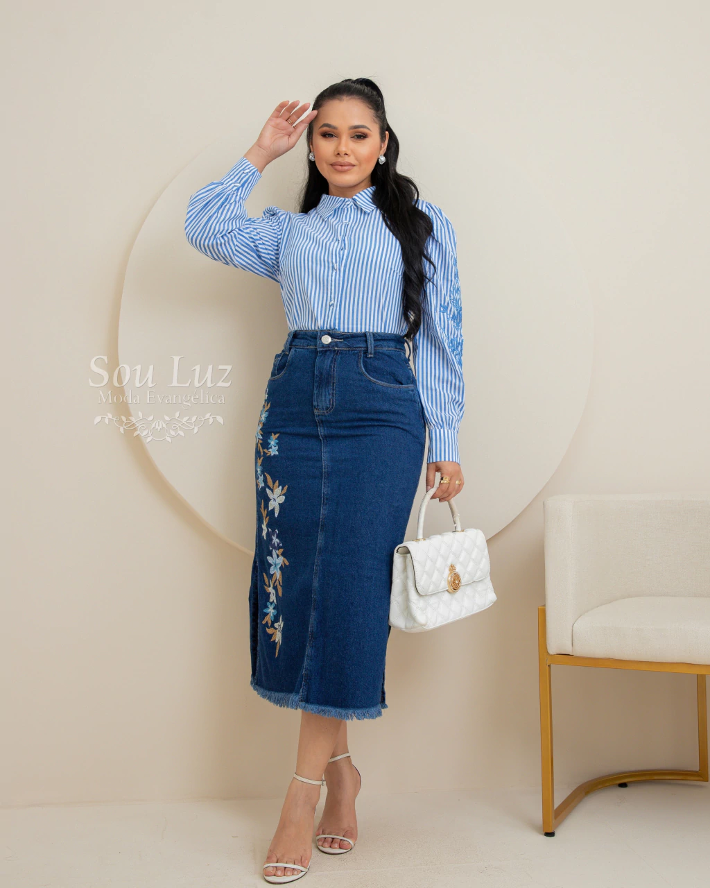 Tecido algodão com bordados em alto relevo.