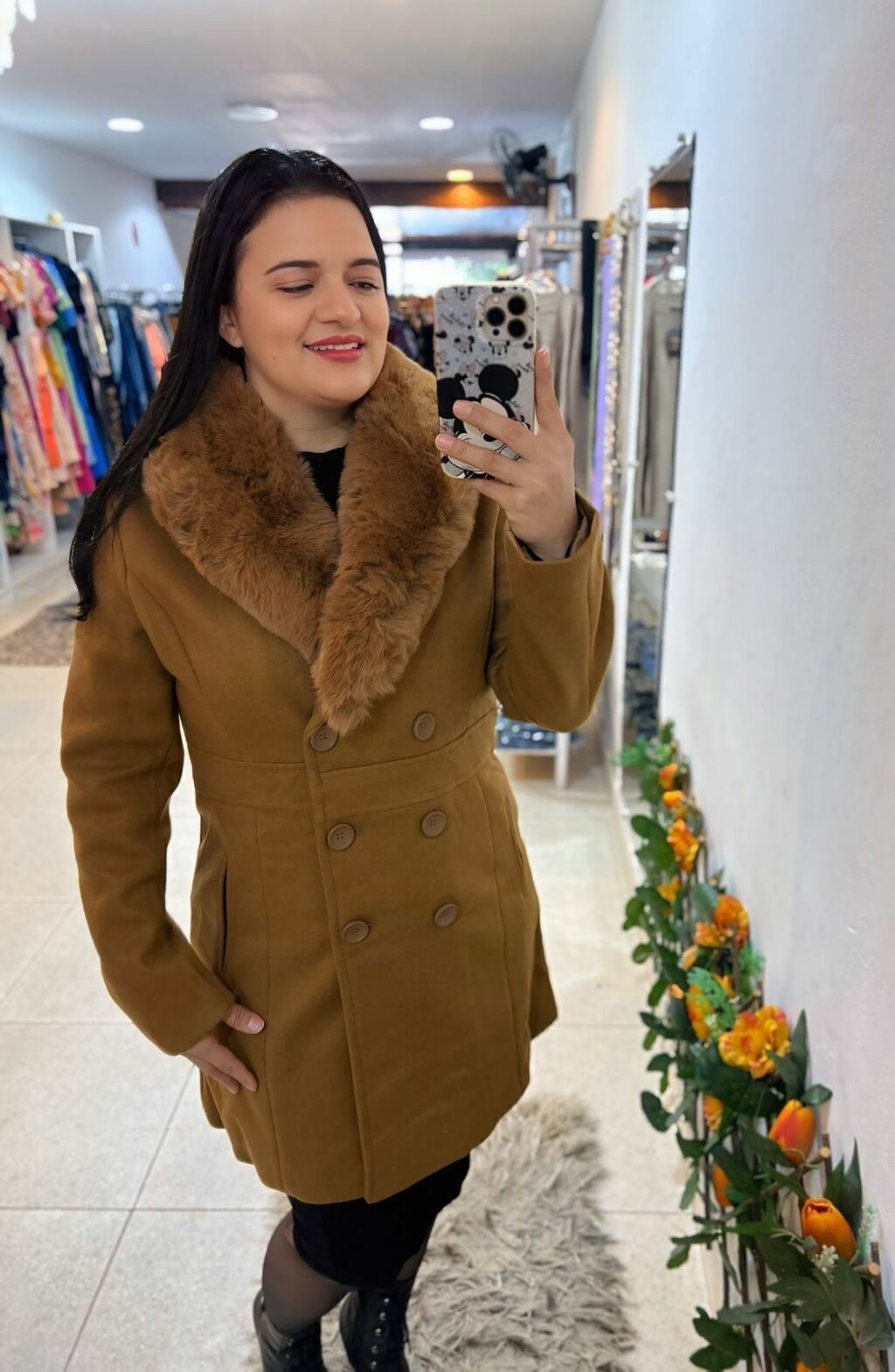 Tecido em Lã batida, todo bem forrado e quentinho, acompanha gola sobreposta que abotoa na gola fixa tendo opção em usao-lo de duas maneiras.