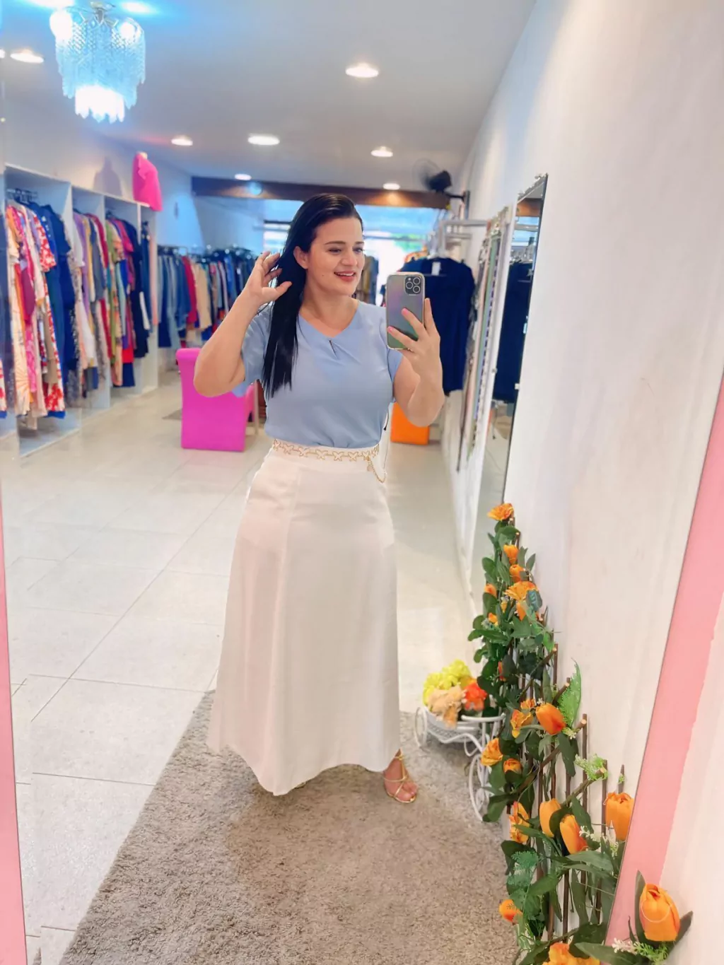 Saia alfaiataria com tecido em linho em ótima gramatura, com bolsos laterais funcionais, zíper no cós lateral. NÃO ACOMPANHA OS CINTOS!
