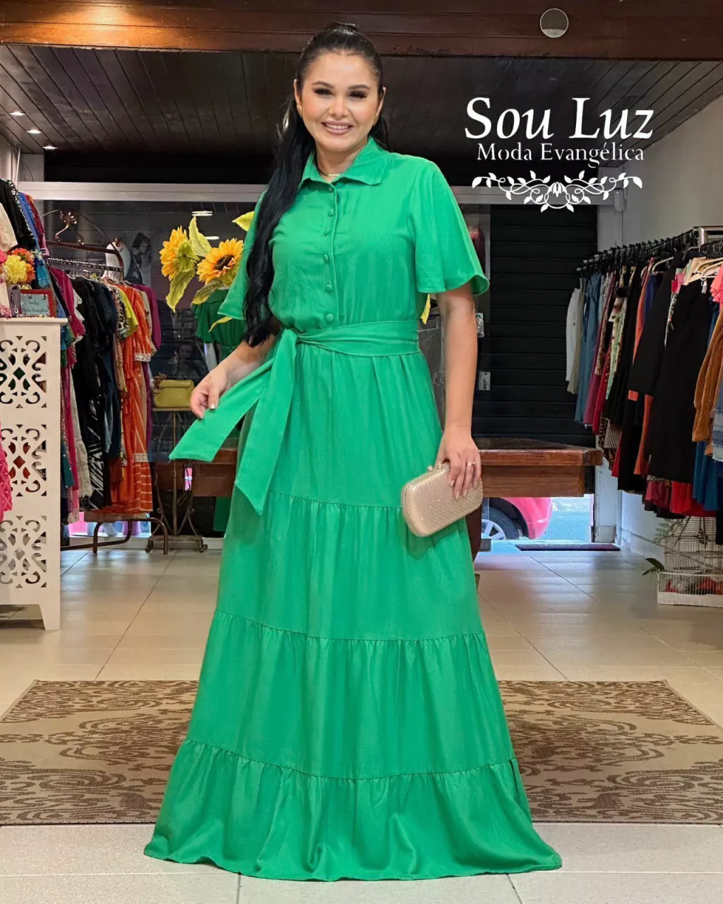 Tecido em linho nacional com ótima gramatura, botões funcionais elastano na cintura e faixa.
